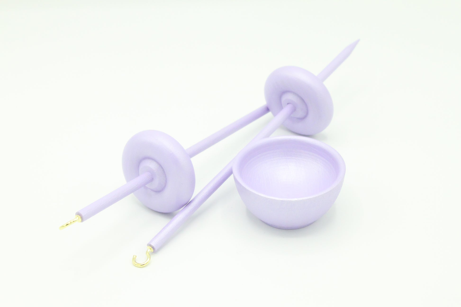Complete Beginner Pastel Purple Drop Spindle Spinning Kit - Midi Size - Top Whorl, Bottom Whorl, Supported, and Roving